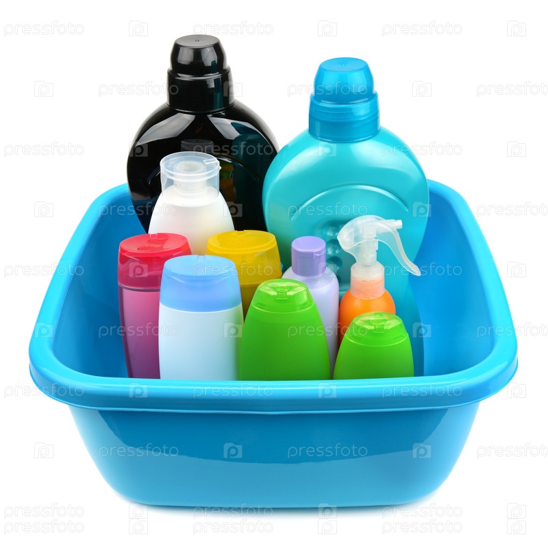 Бутылки с шампунем, мылом и моющими средствами