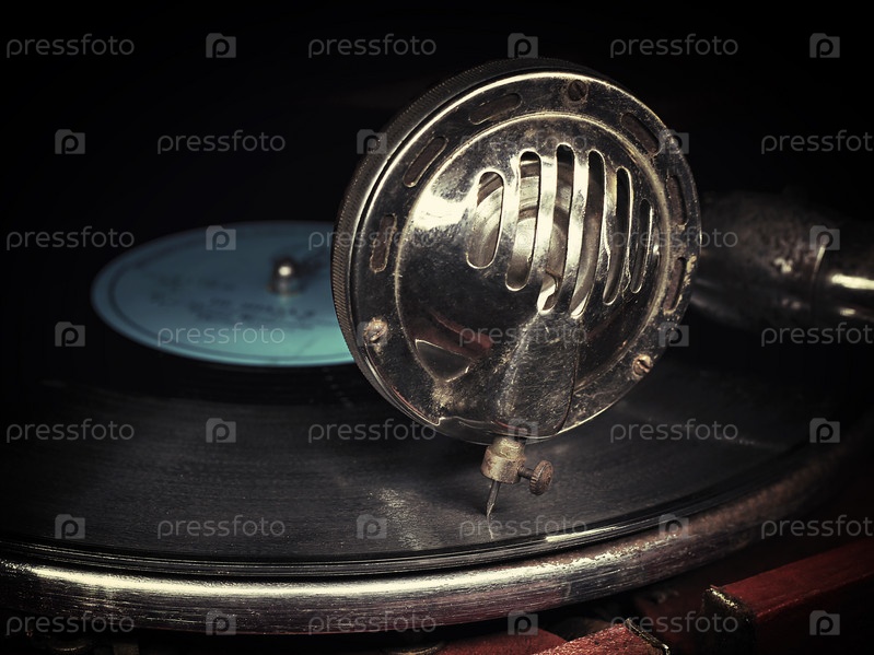 Головка патефона на виниловой пластинке