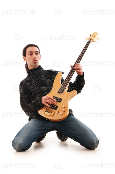 Гитарист, изолирован на белом фоне
