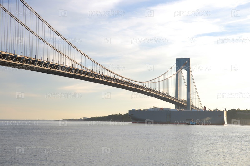 Судно проходит под мостом Верразано в Нью-Йорке
