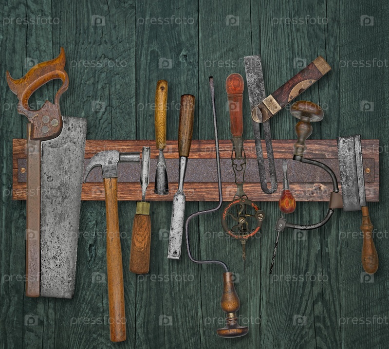 Старые деревообрабатывающие инструменты на стене
