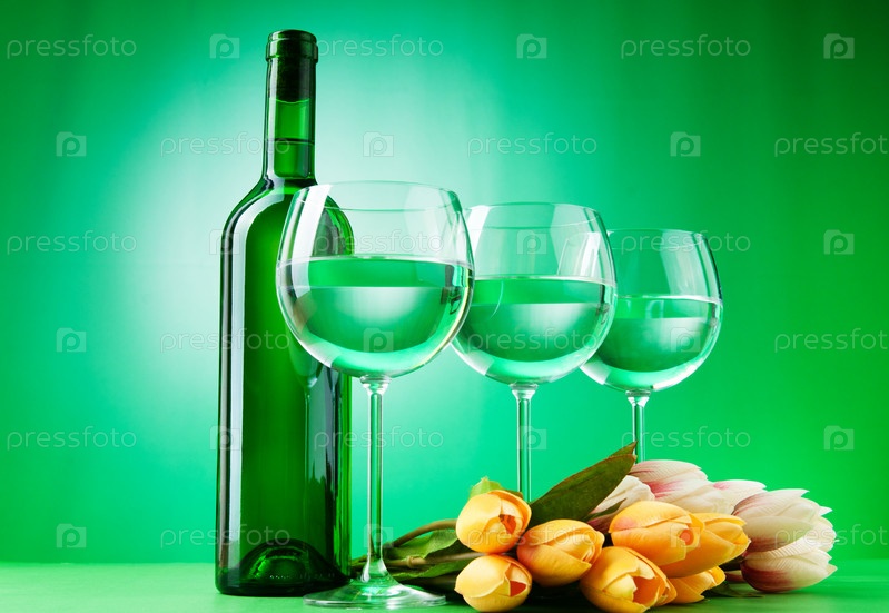 Бутылка и бокалы с вином