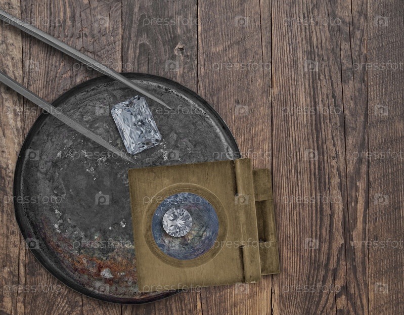 Алмазы в лотке и пинцет