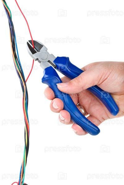Обезвреживание: кусачки перерезают красный провод