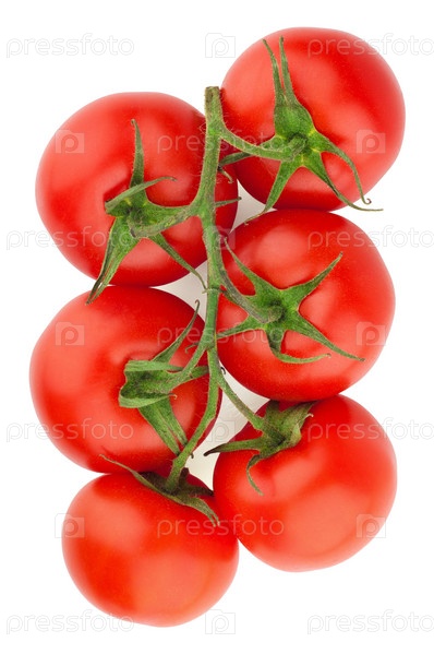 Гроздь красных помидоров на белом фоне