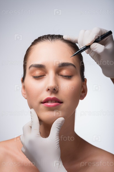 Врач делает отметки на лице