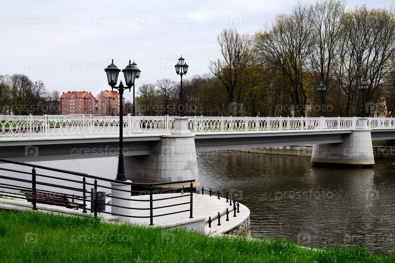 Белый мостик на озере Верхнее (ранее Обертайх). Калининград (до 1946 года Кенигсберг), Россия