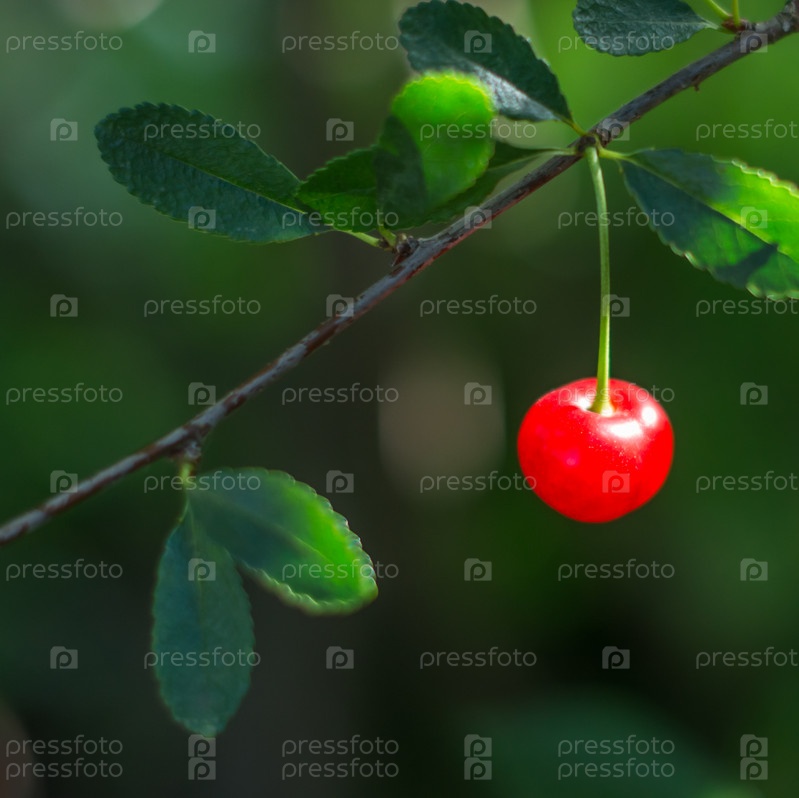 Спелая вишня на ветке