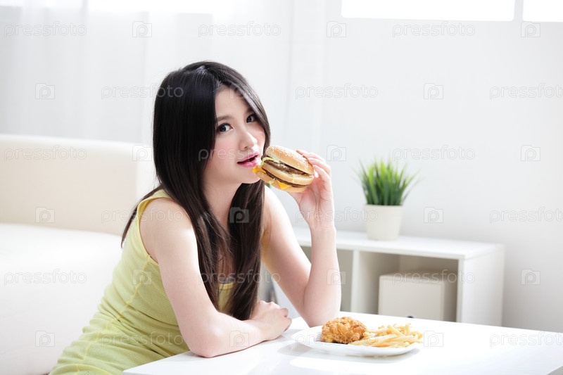 Женщина ест гамбургер