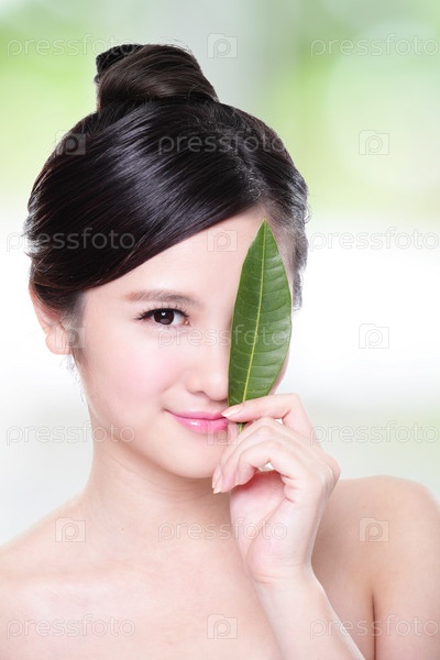 Красивая женщина с зеленым листком