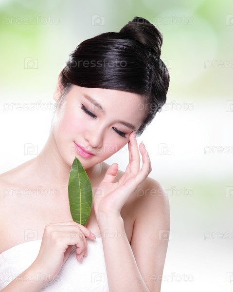 Красивая женщина с зеленым листком