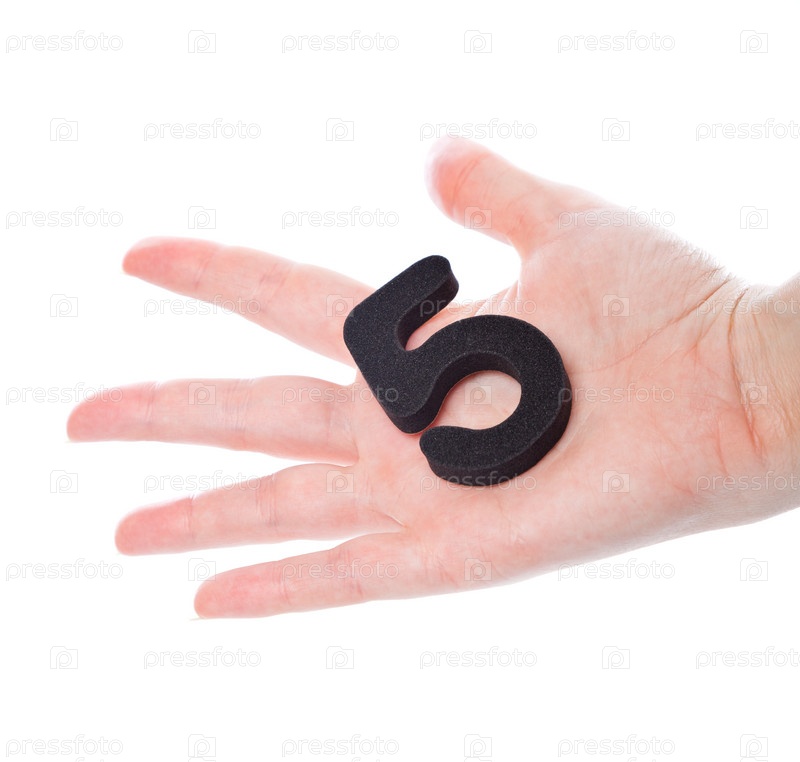 Цифра пять в руке на белом фоне
