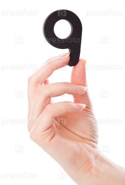Цифра девять в руке на белом фоне