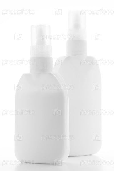 Две пластиковые бутылки на белом фоне