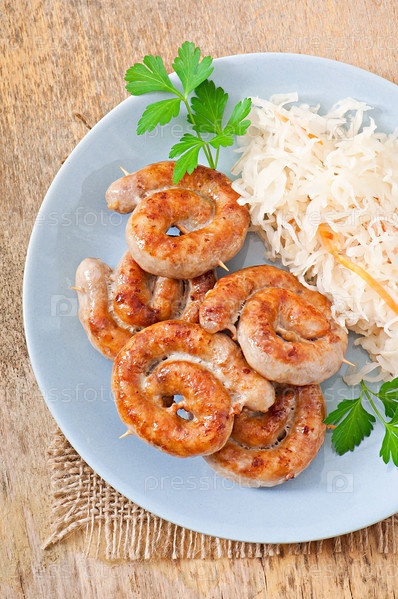Баварские жареные колбаски с квашеной капустой