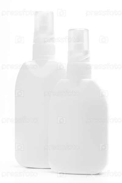 Две пластиковые бутылки на белом фоне