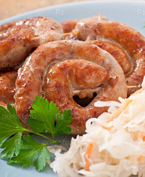 Баварские жареные колбаски с квашеной капустой