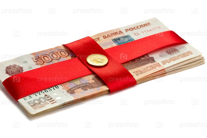 Пачка денег, перевязанная красной ленточкой