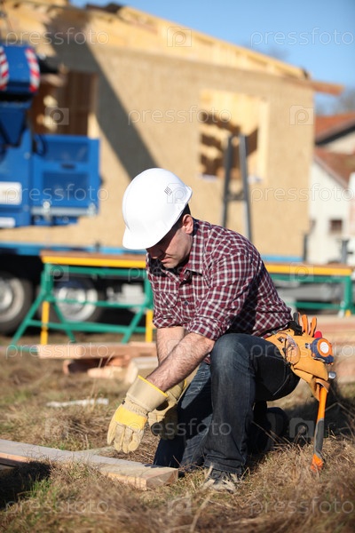 Плотник на строительной площадке