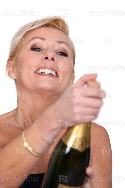 Женщина открывает бутылку шампанского