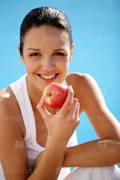 Женщина ест яблоко