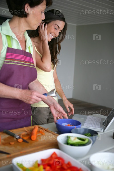 Мать и дочь готовят обед