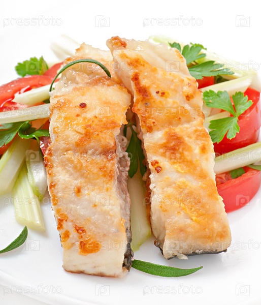 Жареное филе рыбы и салат из свежих овощей