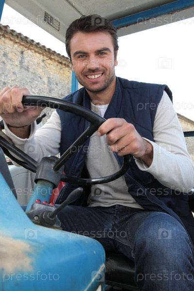 Молодой фермер ведет трактор