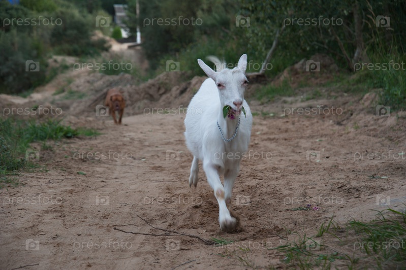 Козы пасутся на свежем воздухе