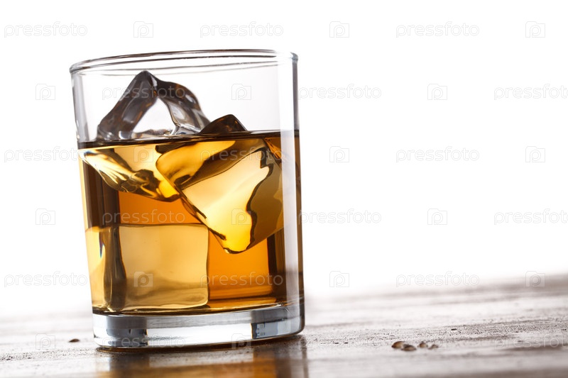 Стакан с виски на белом фоне