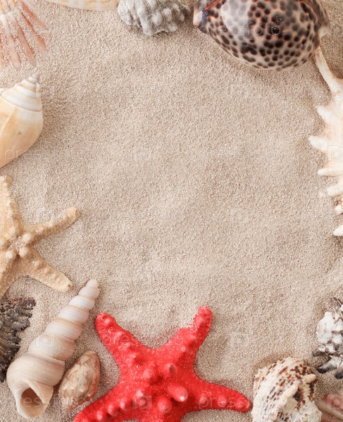 Морские звезды и ракушки на песке