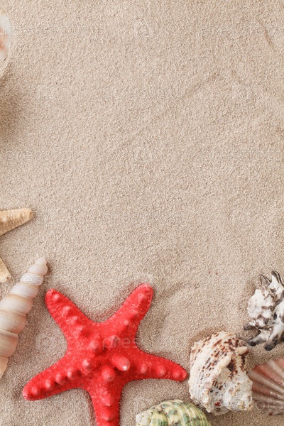Морские звезды и ракушки на песке