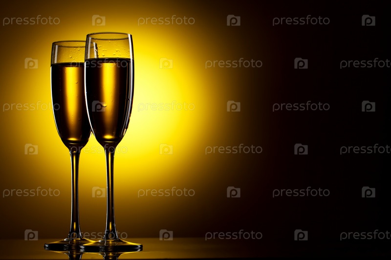Два наполненных бокала на желтом градиентном фоне