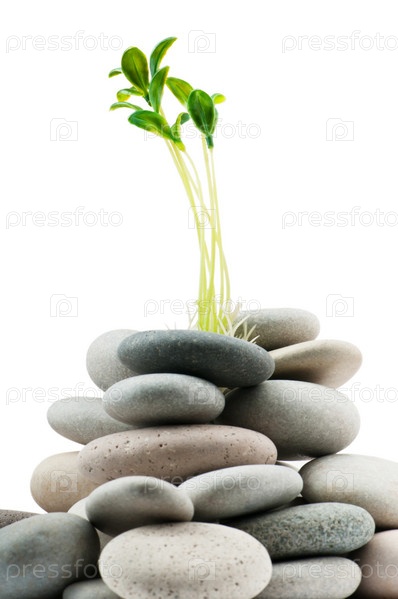 Зеленые ростки и камни