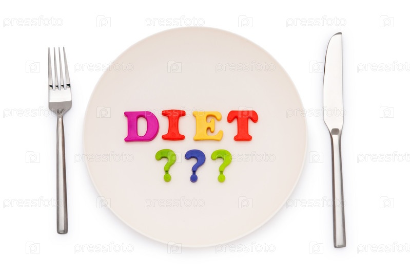 Надпись 'диета' на тарелке, вилке и ноже