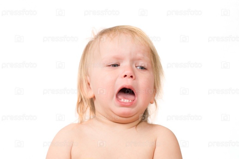 Маленькая девочка плачет на белом фоне