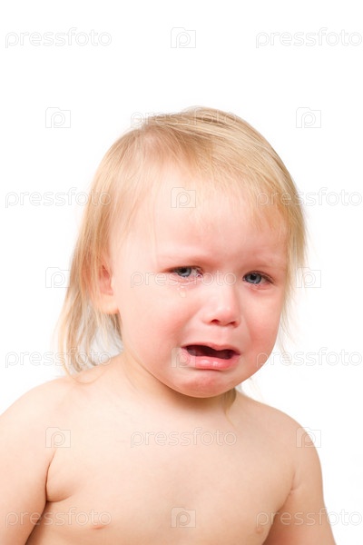 Маленькая девочка плачет на белом фоне