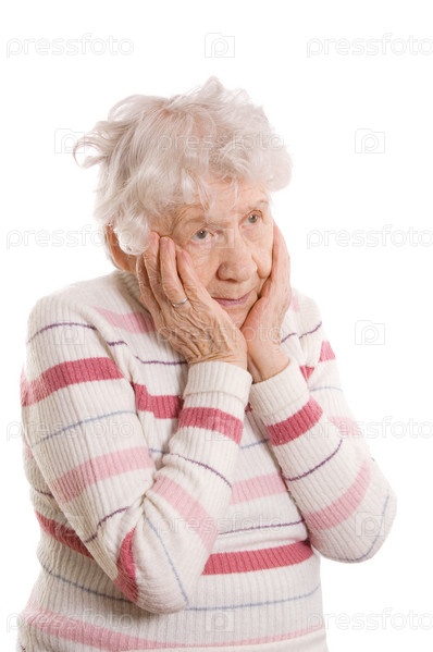 Портрет пожилой женщины на белом фоне