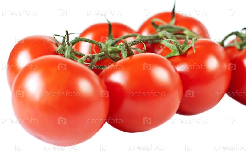 Ветка спелых помидоров на белом фоне