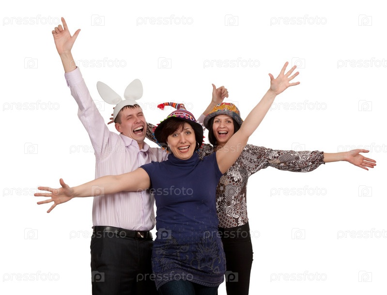 Трое веселых людей на белом фоне