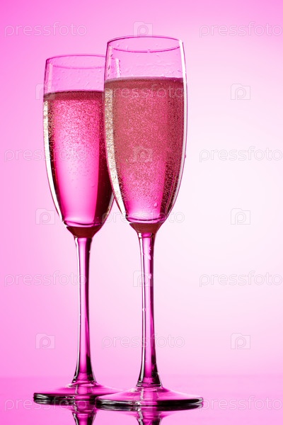 Два бокала шампанского на розовом фоне