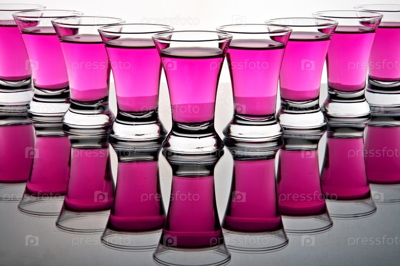 Стеклянные бокалы с розовой жидкостью на сером фоне