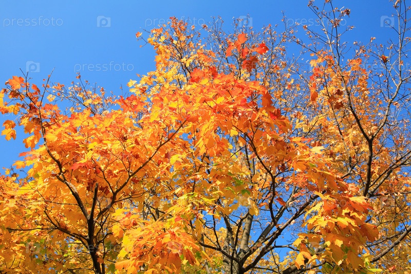 Желтые листья на дереве , золотая осень, сентябрь