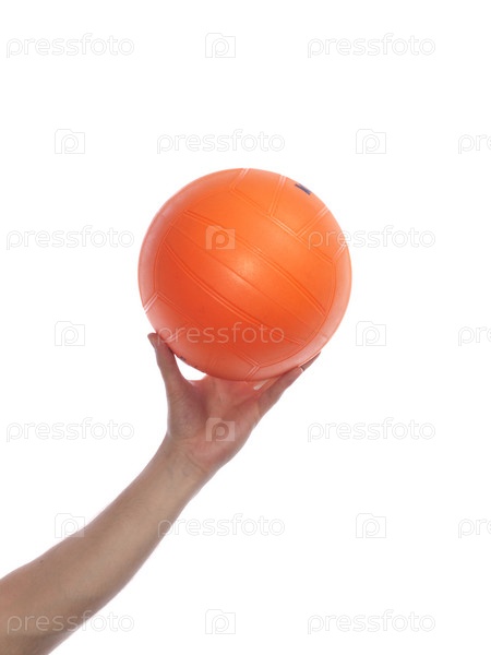 Рука с изолированным мячом на белом