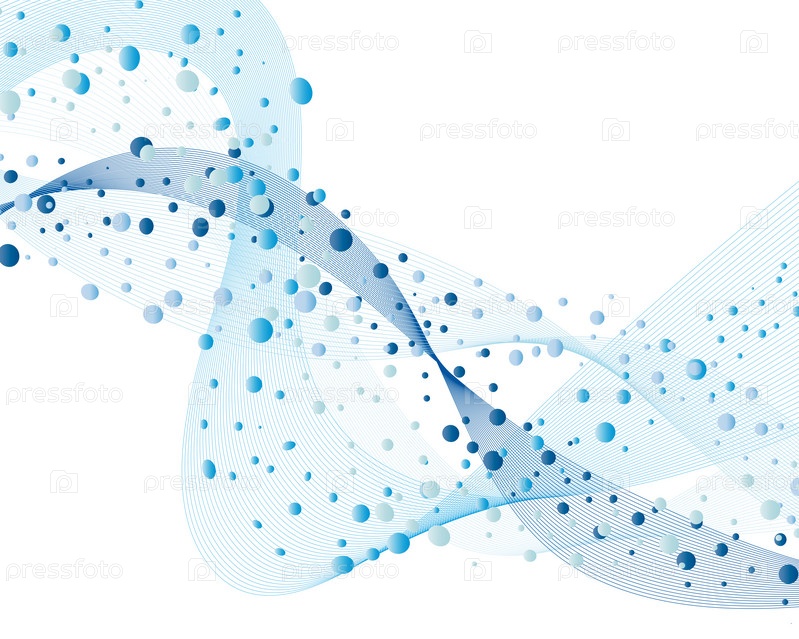 Синие нарисованные волны с пузырьками воздуха на белом фоне