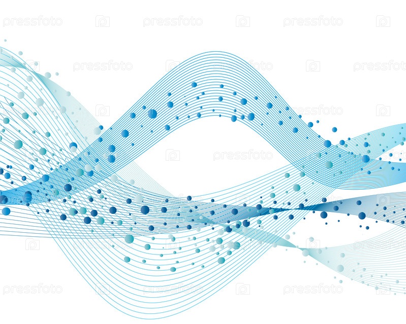Синие нарисованные волны с пузырьками воздуха на белом фоне