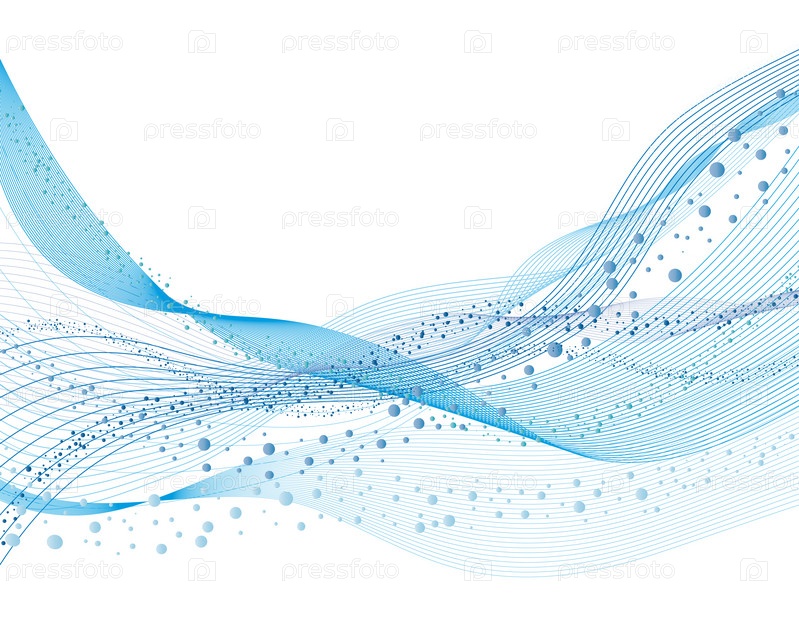 Синие нарисованные волны с пузырьками воздуха на белом фоне