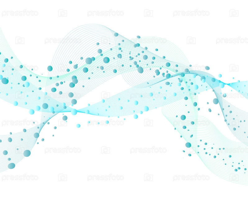 Синие нарисованные волны с пузырьками воздуха на белом фоне