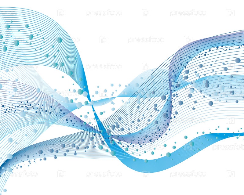 Синие нарисованные волны с пузырьками воздуха на белом фоне