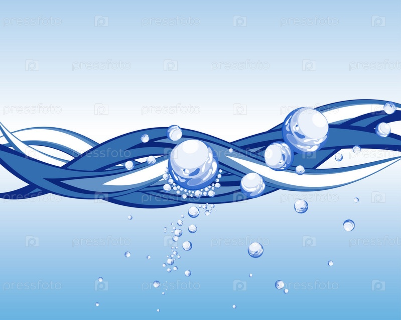 Синие нарисованные волны с пузырьками воздуха на голубом фоне